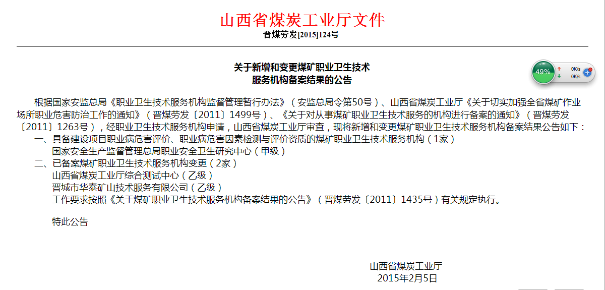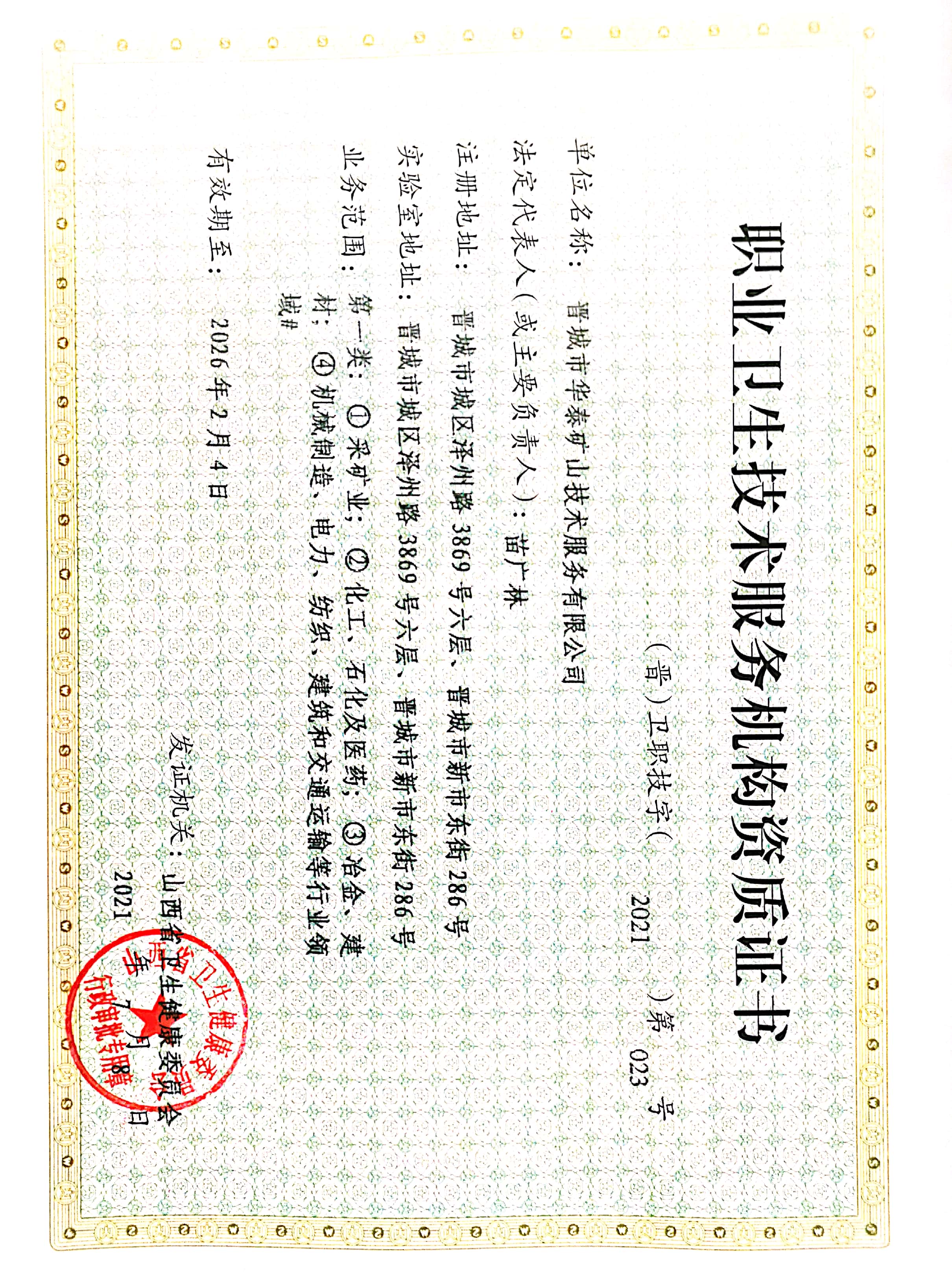 晉城國投華泰科技有限公司(以下簡稱華泰公司)是一家經(jīng)營性國有企業(yè),注冊資金1000.2萬元(由晉城市華泰礦山技術服務有限公司和晉城澤泰安全技術服務有限公司合并整合組建,國投全資)。公司持有山西省衛(wèi)生健康委員會頒發(fā)的《職業(yè)衛(wèi)生技術服務資質(zhì)證書》、山西省應急管理局頒發(fā)的《安全評價機構(gòu)資質(zhì)證書》和山西省市場監(jiān)督管理局頒發(fā)的《檢驗檢測機構(gòu)資質(zhì)認定證書》等資質(zhì),設施設備、能力、資質(zhì)配套齊全。...【詳細信息】